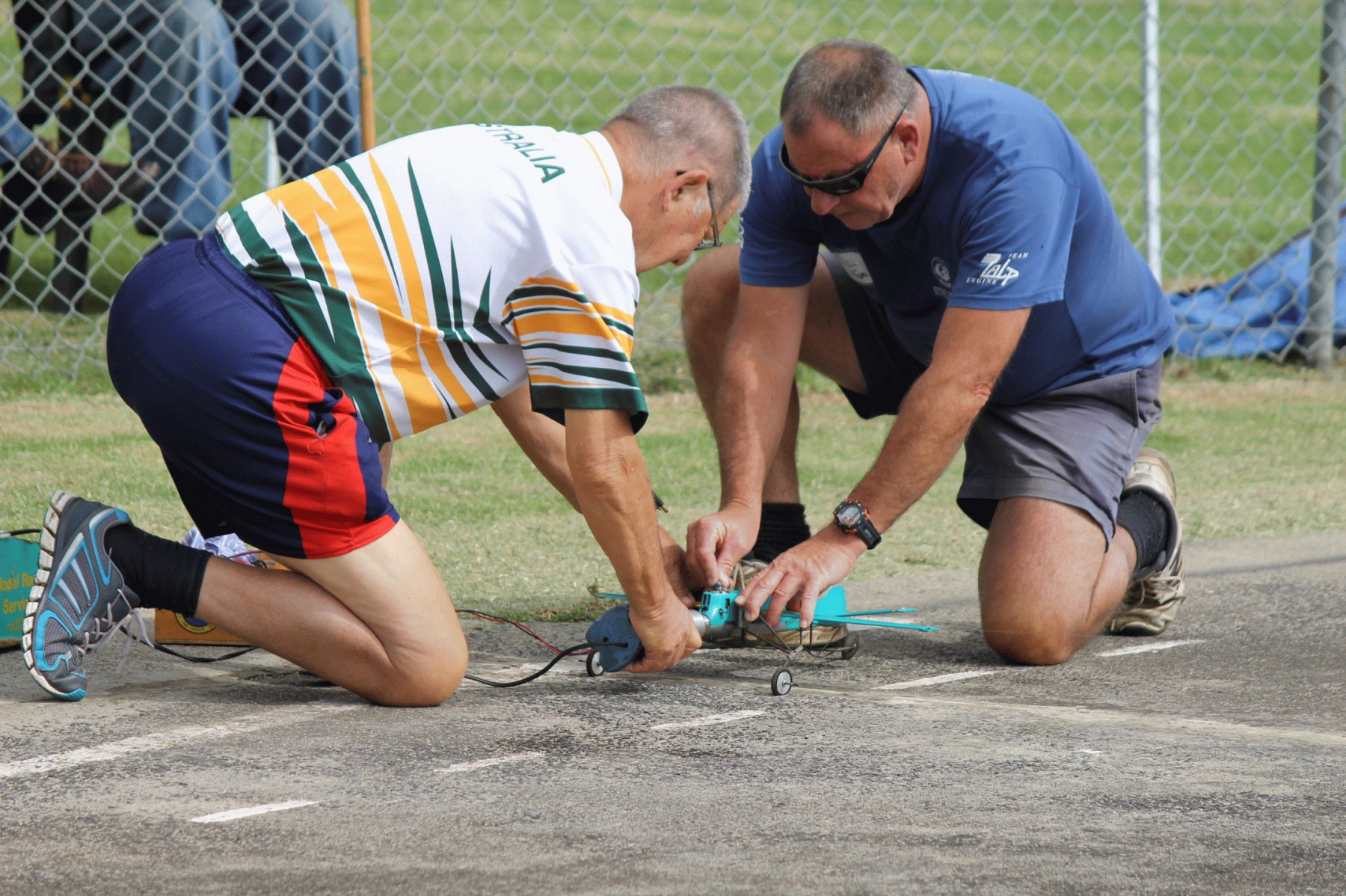 The 2nd flight was fast but slowed down, I found out the pipe stinger was broken, so tried another pipe, This time it went even better but slowed, this time plug had come loose. Harry flew a NR.21 Class 5 for 3 good flights, he also flew his FAI with 2 flights, more time practicing in the pylon will help, which was proven when Mark flew the same model and setting about 3/10th second faster. Mark could not fly FAI as his Profi broke the crankpin of in South Aus-tralia the week before. Ken flew his a ½ A Proto as usual for 3 recorded times getting faster each time.