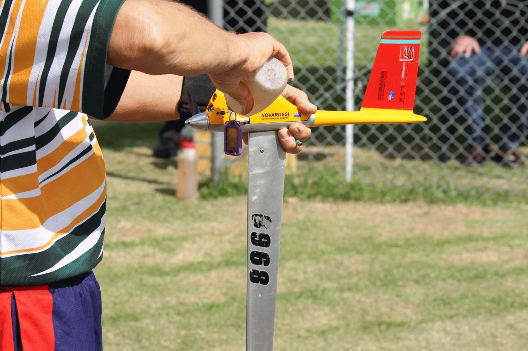 The 2nd flight was fast but slowed down, I found out the pipe stinger was broken, so tried another pipe, This time it went even better but slowed, this time plug had come loose. Harry flew a NR.21 Class 5 for 3 good flights, he also flew his FAI with 2 flights, more time practicing in the pylon will help, which was proven when Mark flew the same model and setting about 3/10th second faster. Mark could not fly FAI as his Profi broke the crankpin of in South Aus-tralia the week before. Ken flew his a ½ A Proto as usual for 3 recorded times getting faster each time.