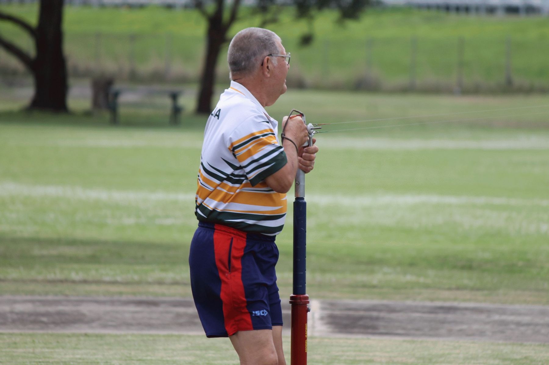 The 2nd flight was fast but slowed down, I found out the pipe stinger was broken, so tried another pipe, This time it went even better but slowed, this time plug had come loose. Harry flew a NR.21 Class 5 for 3 good flights, he also flew his FAI with 2 flights, more time practicing in the pylon will help, which was proven when Mark flew the same model and setting about 3/10th second faster. Mark could not fly FAI as his Profi broke the crankpin of in South Aus-tralia the week before. Ken flew his a ½ A Proto as usual for 3 recorded times getting faster each time.