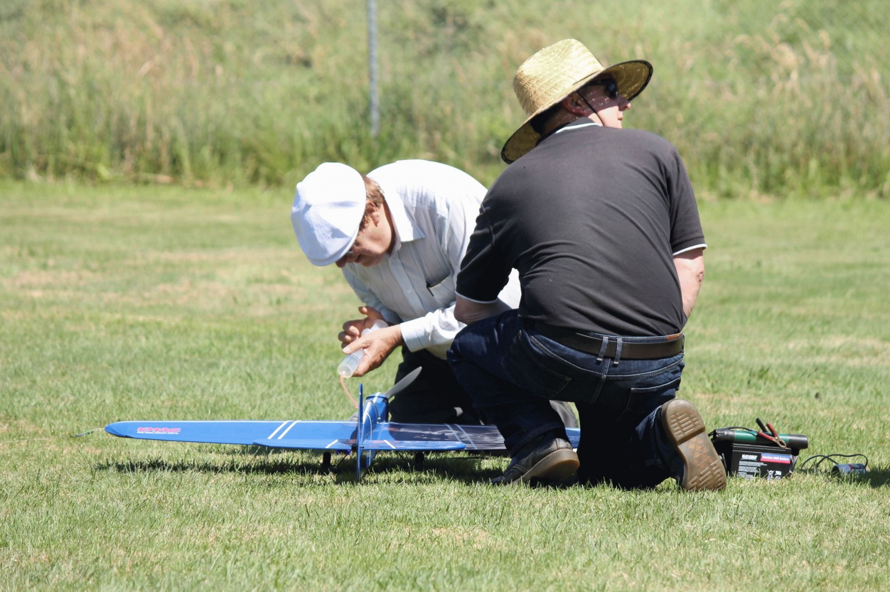 Mark Ellins, Murray Wilson and Harry Bailey flew F2A with their Profi’s. Murray was the quickest. Mark is flying his again after yet another shaft blow-up, he decided to have a break from F2A, so I fixed up a damaged integral bearing shaft by machining that part of shaft to fit a normal bearing to get him going, seemed to work. Harry flew one of Noel Wake’s old Class 5 models with Novarossi .21, but it was a bit over-propped for 10% fuel. I flew my Class 5 model NR.21 trying a few different props went OK and very close to record, I also flew my number 3 Class1. I tried another prop on second flight but too much pitch. My number 1 Class1 is put away as I won’t be able to keep up with it’s pace any more . Another Class 1 was Andrew, it did its usual times and reliable. Another great day, thanks to all who came and thanks to Fiona for cooking the hamburgers. Robin