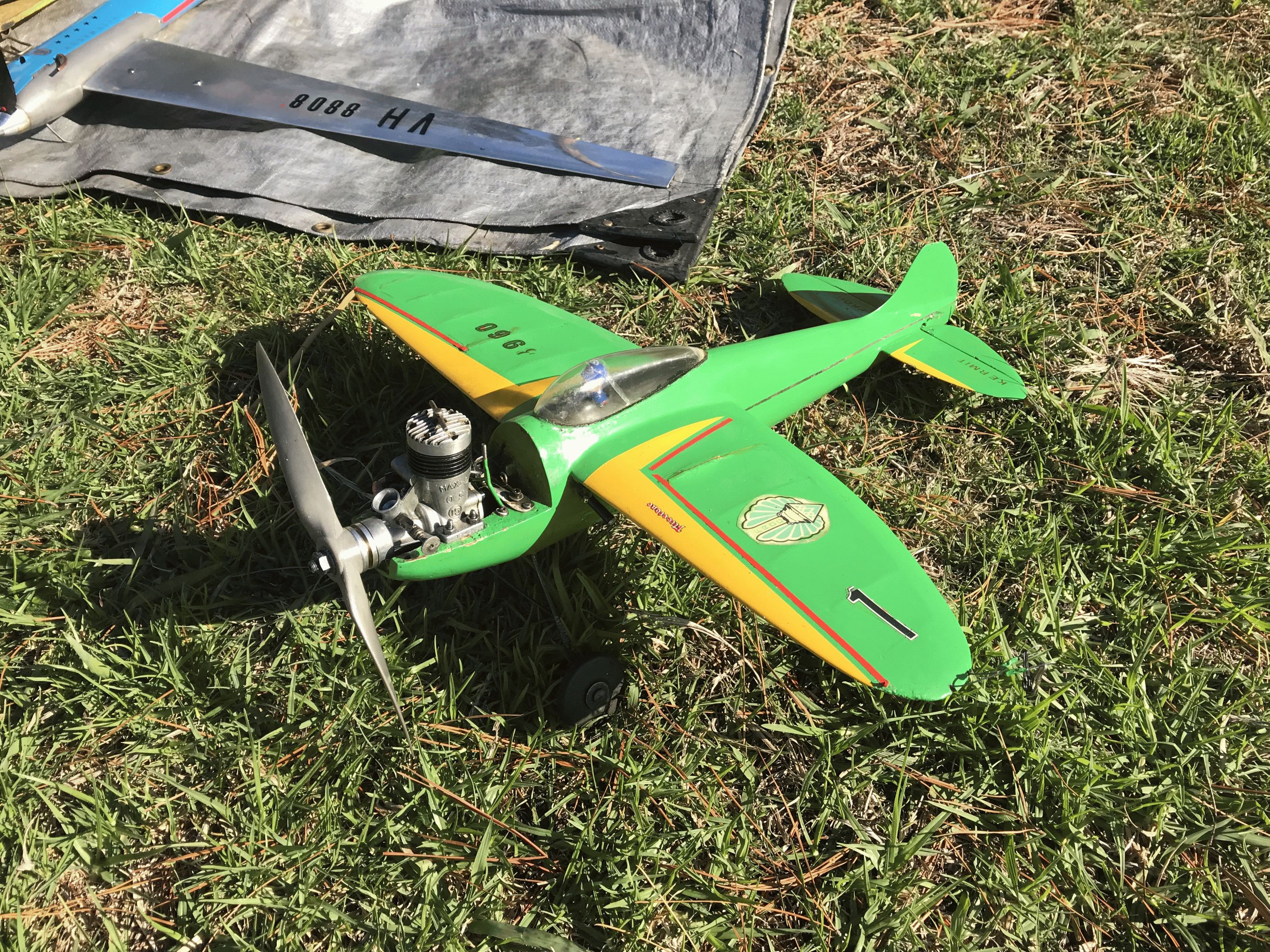 Harry Bailey flew three classes, one of which was a Proto model that was built by Noel Wake. He also recorded a personal best time with his F2A model but used the combined speed yolk in the pylon. He needs more F2A pylon yolk practice.