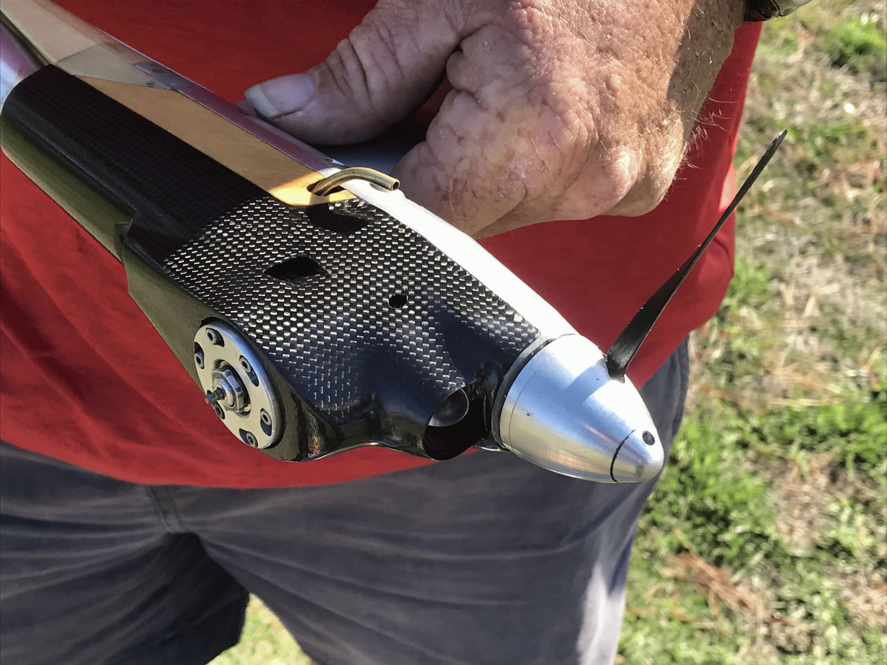Robin Hiern was the first to fly with his Proto model. He was hoping to produce enough speed to try to re-claim the class record that was set by Francis Jacobsen at the recent Nationals. His one and only flight was not a good setting and after a model inspection the model was found to have a breakage in the engine mounting plate.