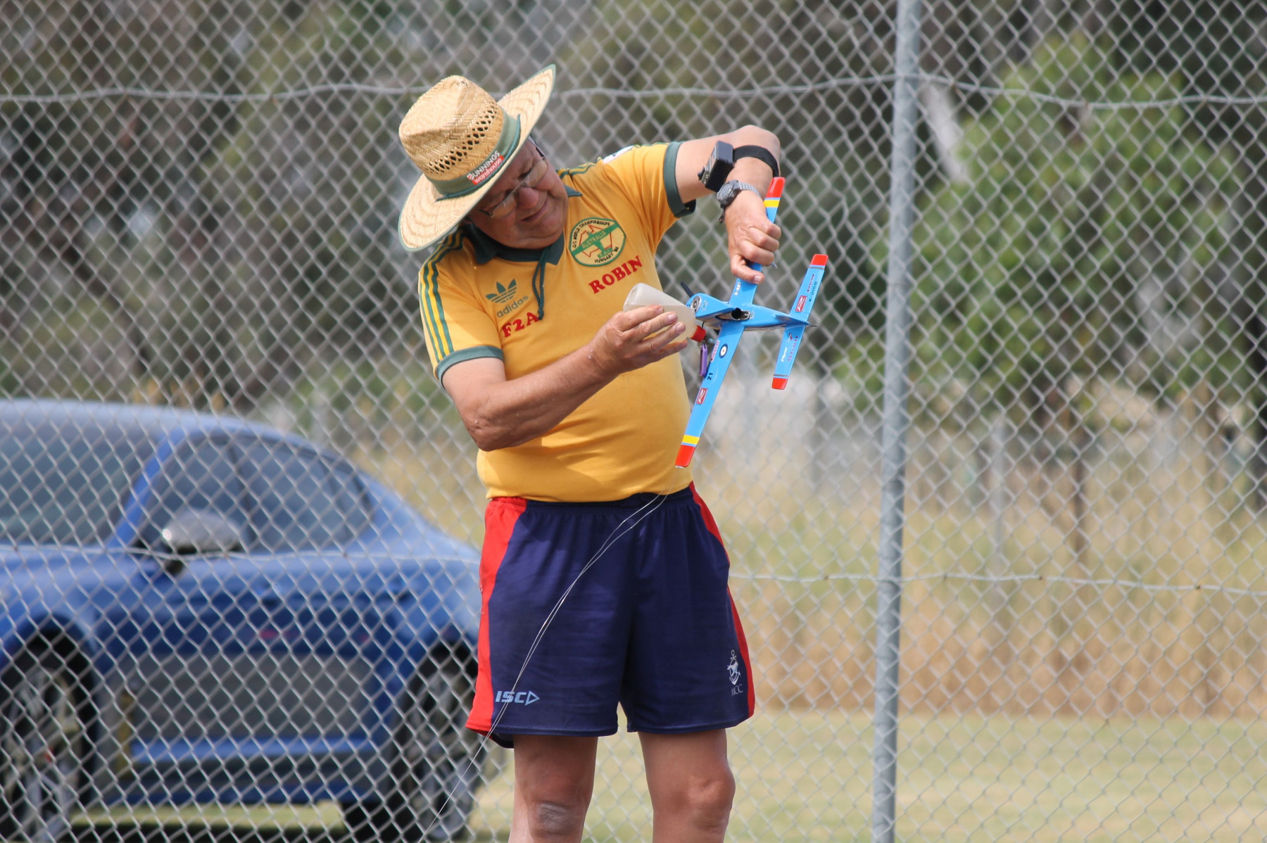 His first flight of the day was his fastest followed by two more flights that were a little bit slower. Mark Ellins was using the FAI pylon and short lines on his Class 1 model so that he could get the rotation speed similar to FAI for practice purposes. Andrew Nugent’s usually reliable Novarossi 12, Class 1 engine sounded “off” during it’s only flight so it will be disassembled for investigation. Thanks to Terry Dodds and Ron Savage for turning up and doing the timekeeping.