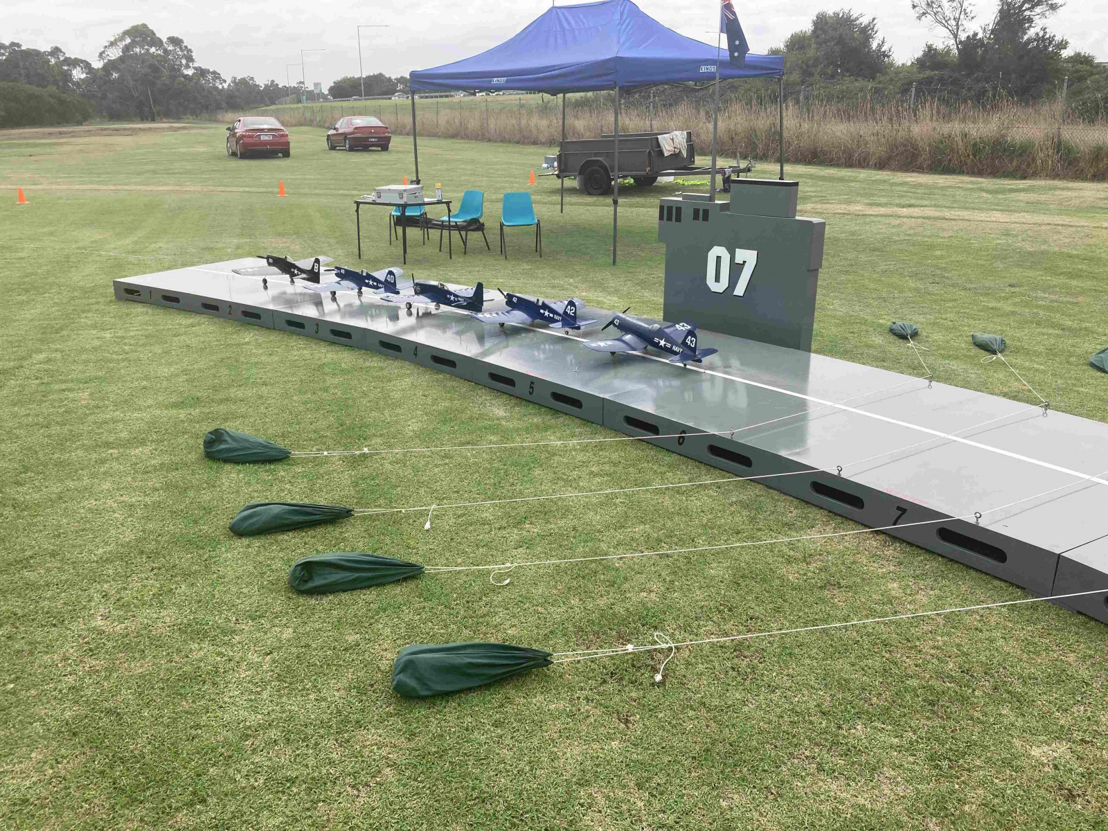Other attempts have been made to use the carrier deck but the weather, lack of entries or many other reasons prevented the events from going ahead. In February 2017 the deck inside the trailer was rolled out ready for use with some models pictured along side it but it did not get used. So that makes it around 5 years since the last Navy Carrier comp…. wow!