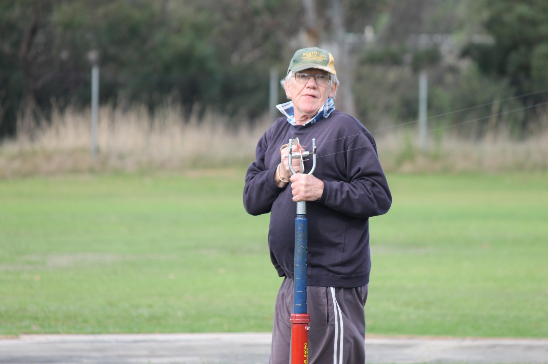 The usual gang of enthusiasts turned up to fly, this keeps the class alive, we must keep flying or we will die out. I flew first up to fly my troublesome B Proto model after yet another rebuild, first 2 flights the cut-out keep going off, it’s never done that be-fore, so I took it off and finally broke the Proto record. The model is now due to be checked by an FAI observer. The model is powered by an OS 30 truck engine on an old style pipe.