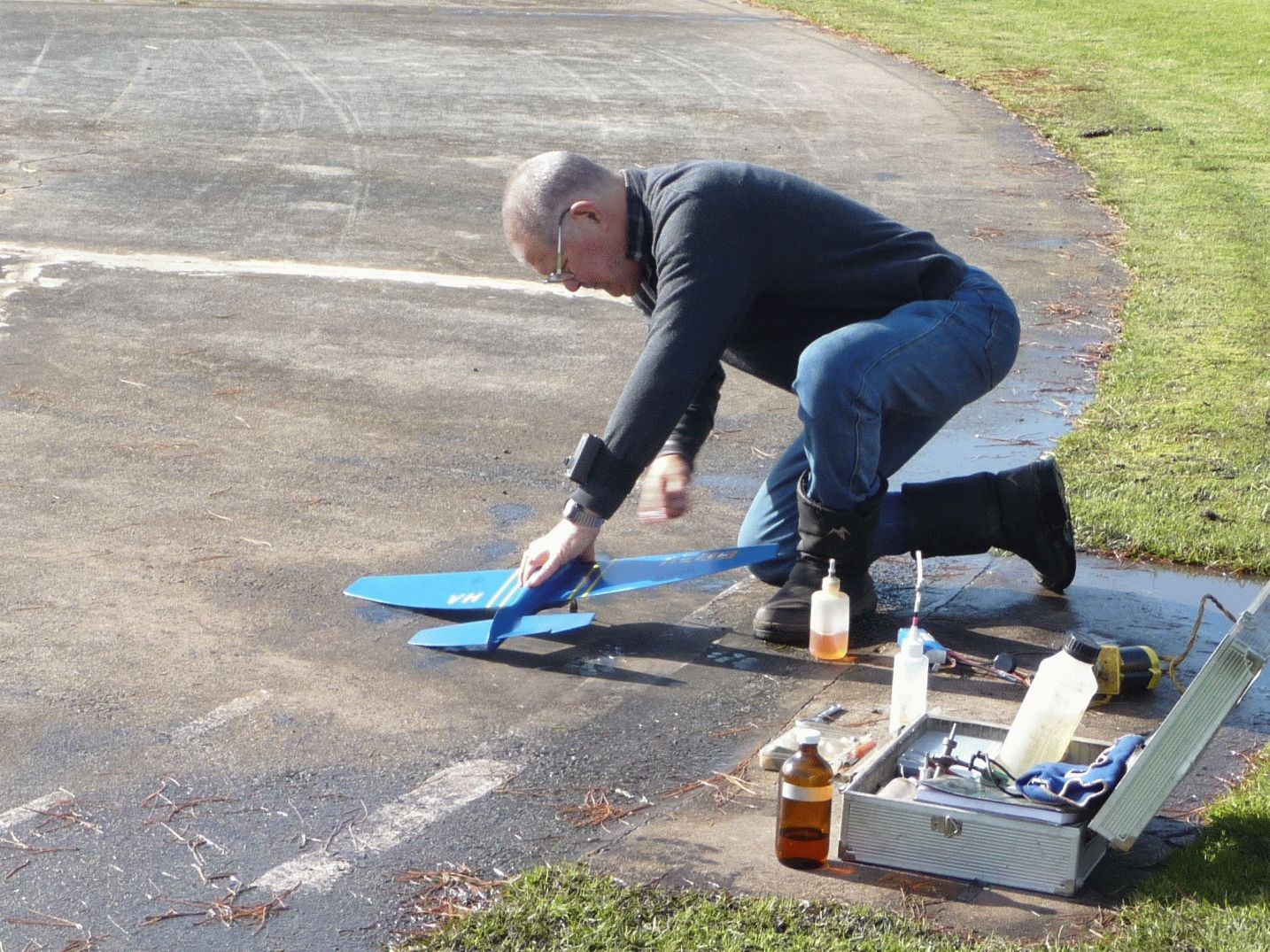 Andrew was going to fly his Class 1 but found that the prop was damaged and did not have another spare with him. Gary Whitburn who also flies r/c pylon and sport flies with us flew my old “Devil” with Enya CX11 just for fun. There are a number of OS CZ11PS and Enya motor in models for Class 1 speed but they do not get flown as they are not competitive with the Novarossi’ s. What happened with flying for fun??